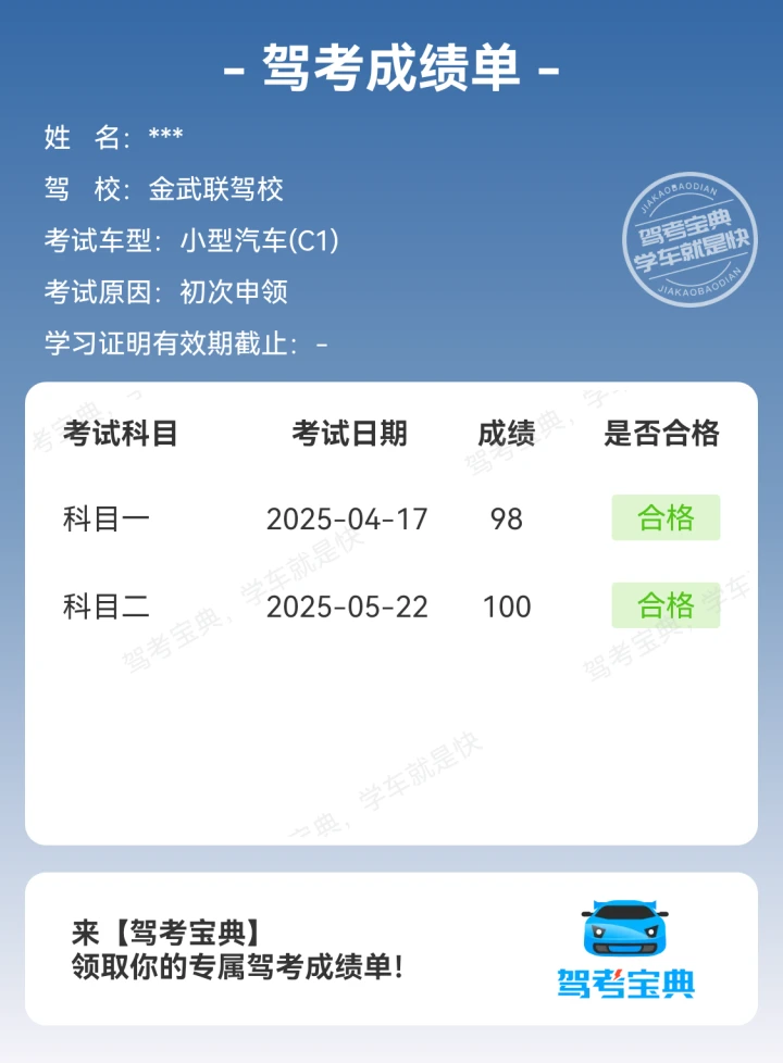 科二过考啦!始终要相信自己~学车就像修炼一样,一天比一天奈斯!