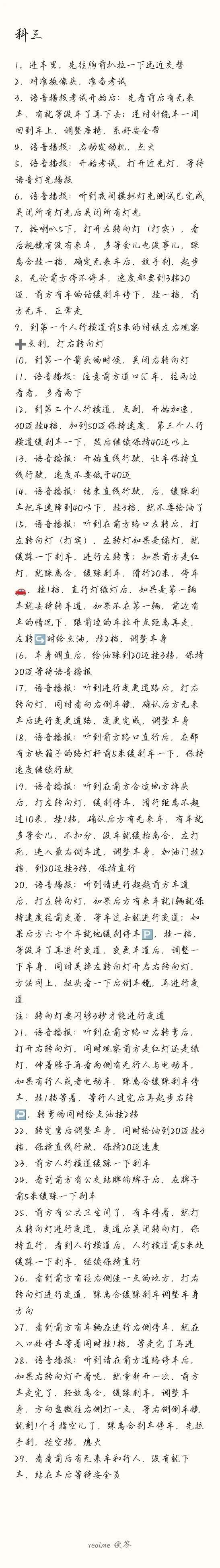 历时两个月,普通上班族,终于增驾完成了! 科一与科四我认为的技巧就是刷题,刷到看到这题我就知道答案是啥,一定要认真的刷错题 科二在练车的时候一定要多找一些参照物,去哪里考试提前去考场熟悉一下,找好自己的参照物 科三多注重一些细节,为此我把这边的过程给默写出来了,也是为了理清思路,我分享出来,你们按照自己的驾车习惯和线路重新整理一下奥