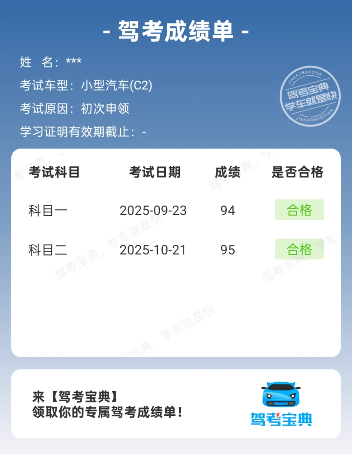 科二考过啦!始终要相信自己~学车就像修炼一样,一天比一天奈斯!