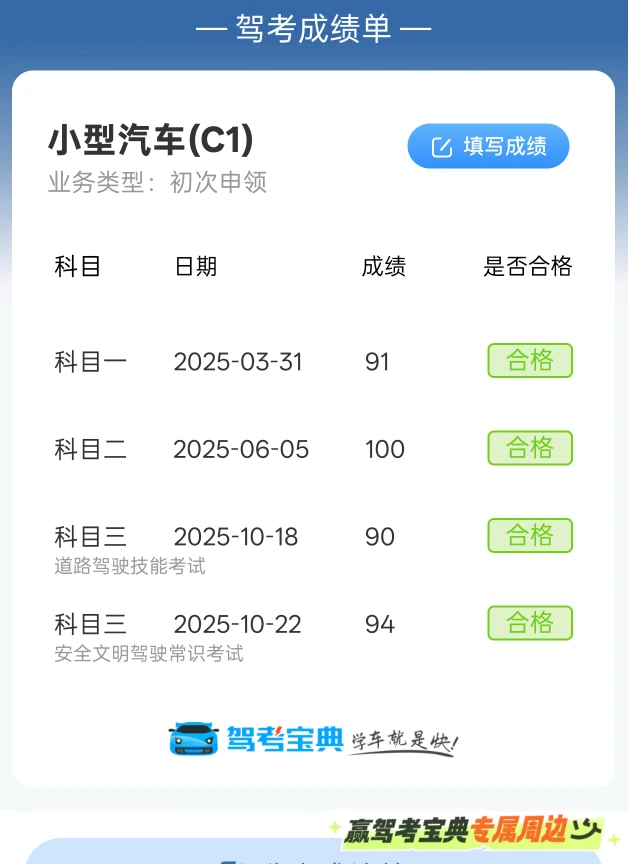 给各位要学车的宝子分享一下我学车的心得,科一科四这种理论考试就直接点模拟考试,多模拟几遍,然后再去做错了的题,这样合格差不多够了,如果你想一百分那就当我没说😏。至于科二和科三就是用心去学就好了,在脑袋里面能记住每个项目要干些什么,考试的时候不要紧张就当平时练车那样就好了。一个驾照而已,相信自己一定能考下来的,万一一次不行就再来一次咯😁
