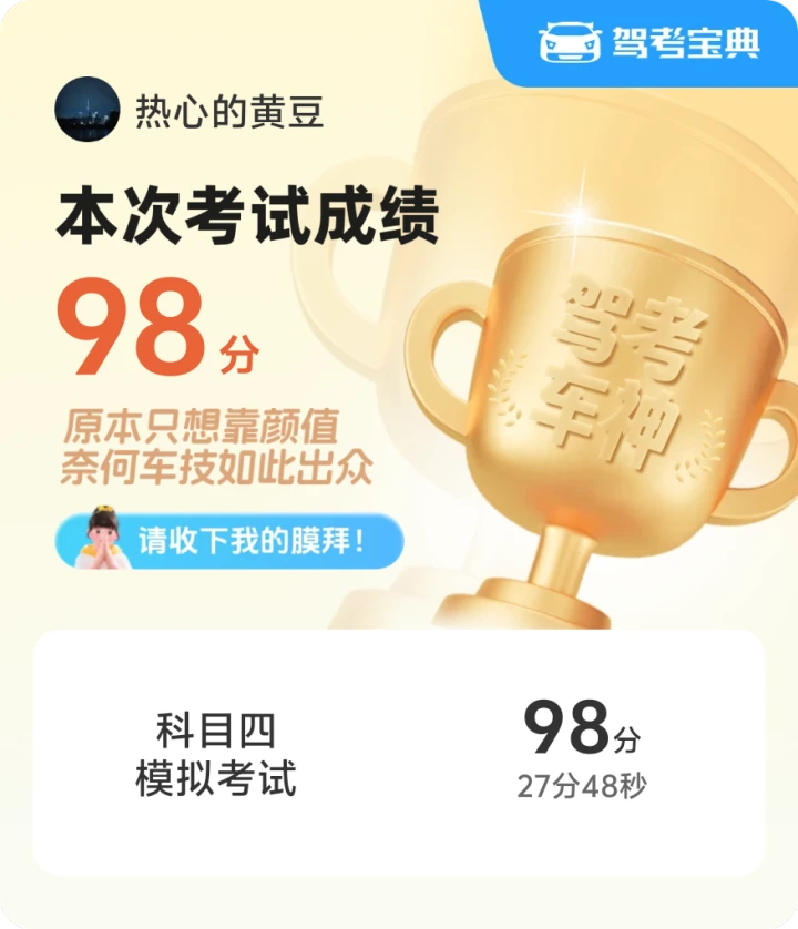 轻轻松松简简单单,感谢驾考宝典,今日前来谢宝典,祝愿大家考试都是一把过✊️✊️✊️。