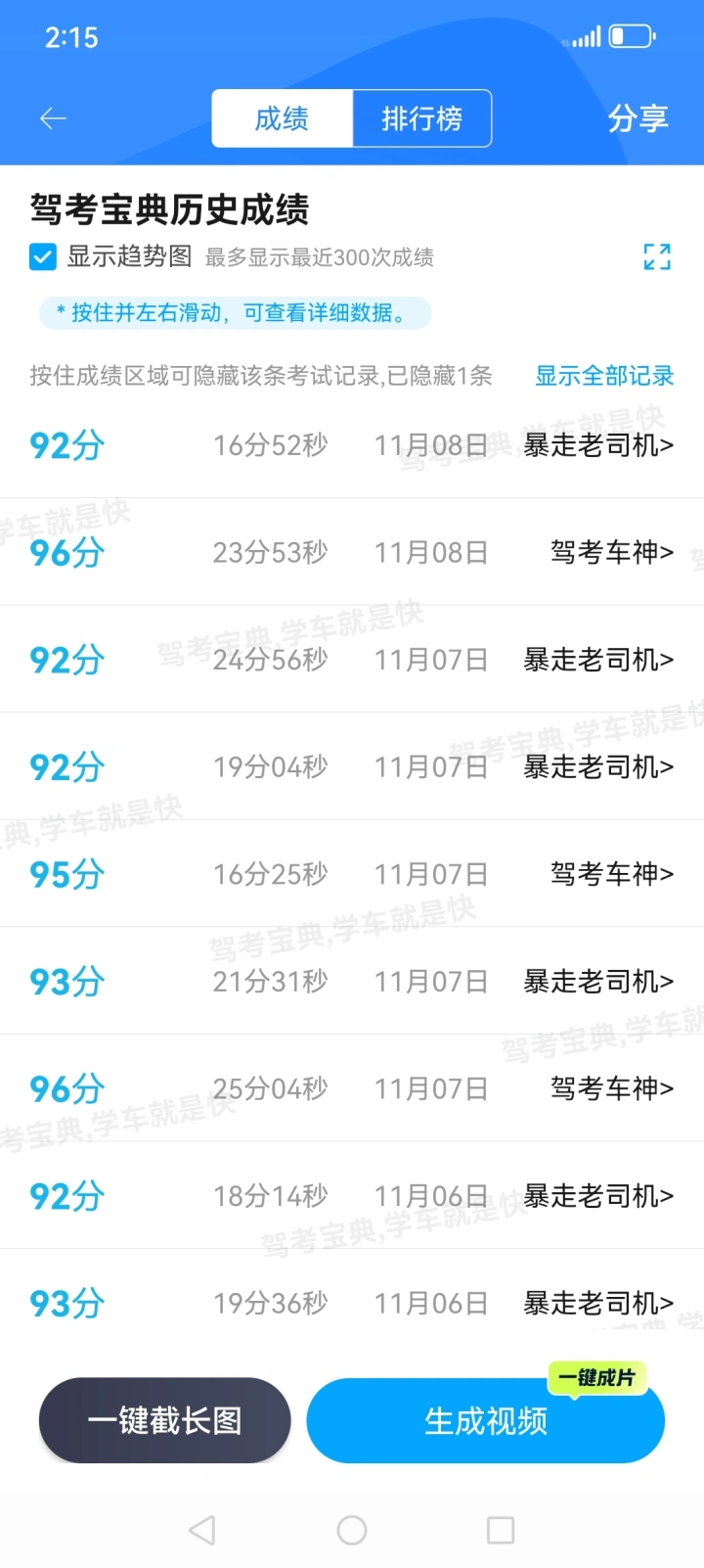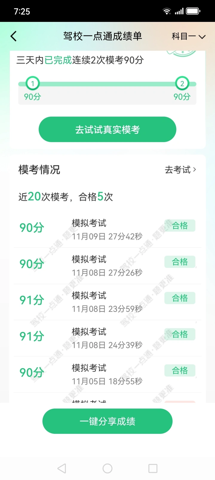 我一号交的钱,到现在五天了,已经约考了,十号,感觉科目一还行,主要就是,先在网上看看重点,有一部分题是有口诀的,然后刷完题库,模拟看看那部分理解有问题,然后死磕错题本,不要一直学,学学就溜达溜达,要不人都傻了,该放松放松,等错题没那么多了,就磕模拟,直到把把过九十就差不多了,约考,然后就是复习,放松,考试还是挺让人紧张的,心态好点,看题仔细点,不会的先过去,把会的做了,再回来研究,这样心里就有底了,四十五分钟呐,咋滴都够了,剩下其他的就是看理解了,罚款,扣分,标志,登记,啥的,就得看理解和熟练度了,祝各位和我自己科科一把过,加油